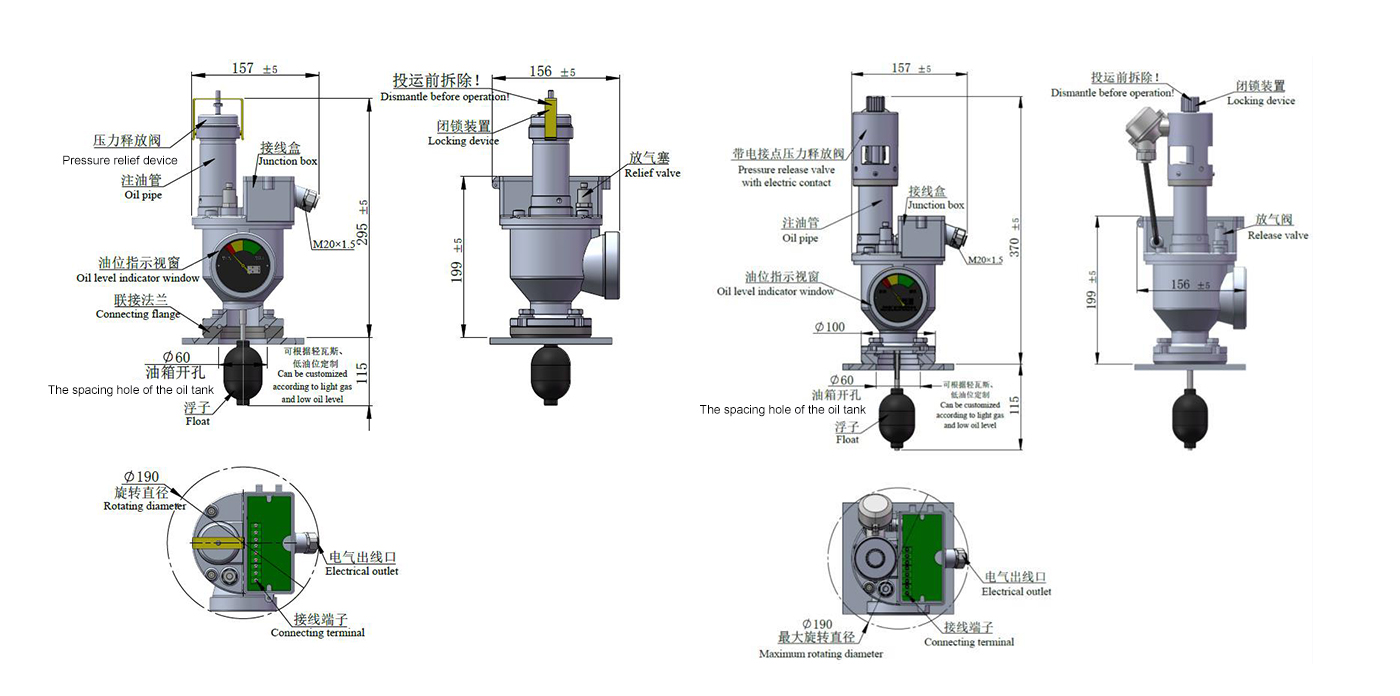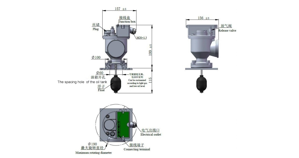 1. 安装位置:安装于箱盖顶部。