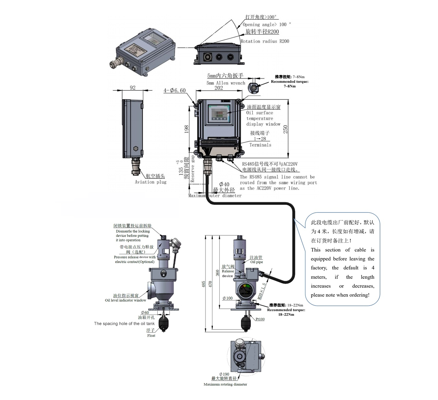 5. 安装方向:安装于箱盖顶部,与箱盖平行。