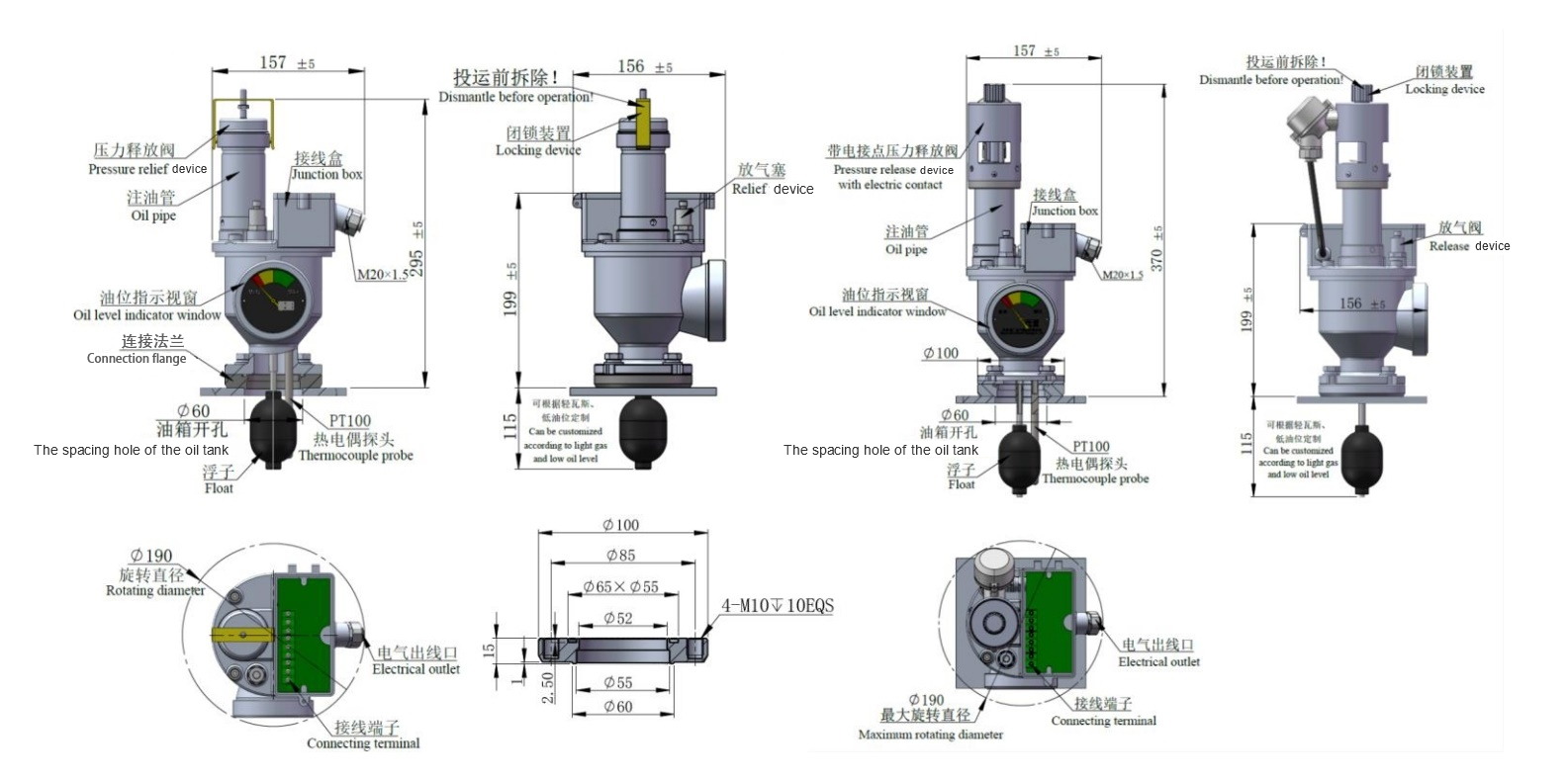 1. 安装位置:安装于箱盖顶部。