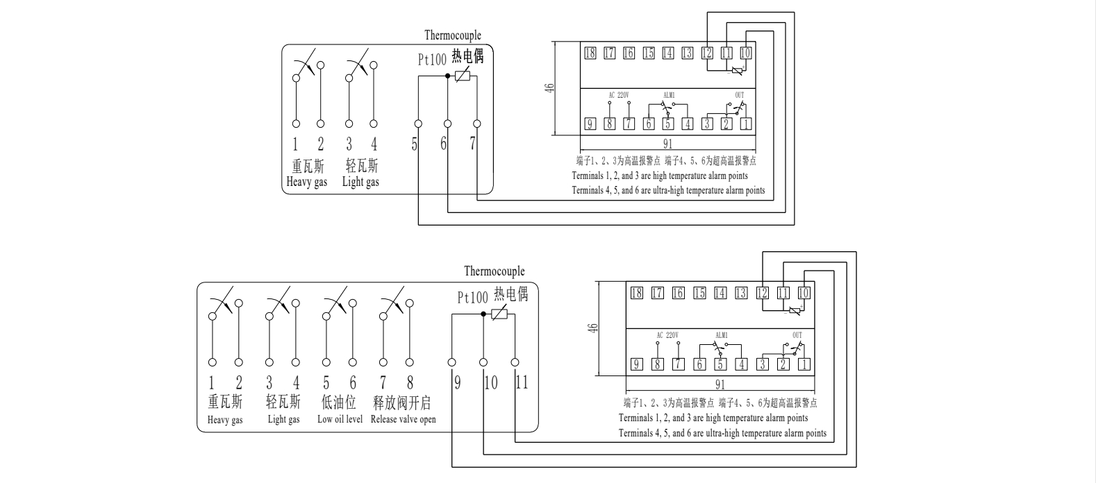 5. 接点容量:AC 220V/3A、DC 220V/0.5A。