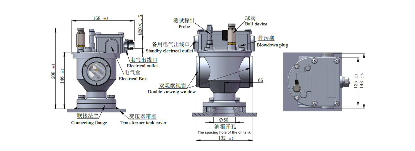1. 安装位置:安装于箱盖顶部。