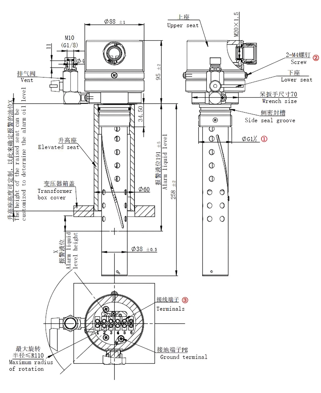 4. 防护等级:IP56,适用范围:海拔 0~4000m。
